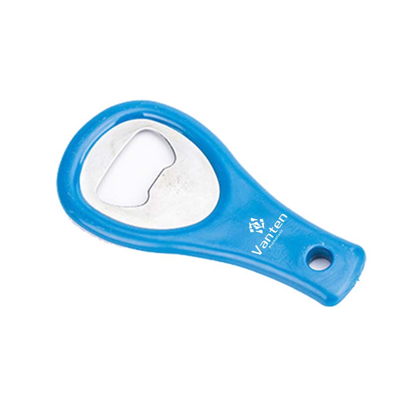 Racket shaped bottle opener made of plastic and stainless steel, simple and durable, the keyhole is convenient fo