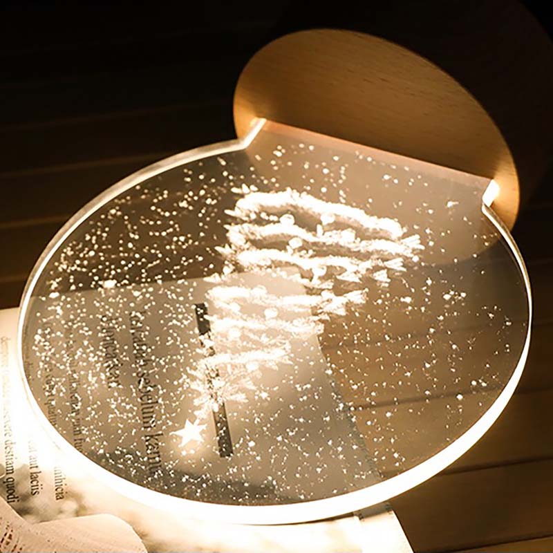 This is made of acrylic and the base is made of beech wood There are LED beads on the base, 2W low voltage