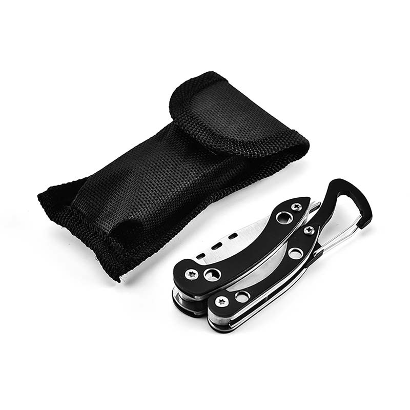 This metal pliers multi-tool can be stored in the black oxford sack when not in use. Include: 2" blade, wire cutter, needle nose pliers, pliers, can opener/line blade, slot screwdriver and Philip's screwdriver. The carabiner clip makes it easy to take anywhere. This is the ultimate utility tool for the handy man, features a superior stainless steel that folds up for convenience and easy portable storage. International freight may vary, please confirm the price before placing an order.